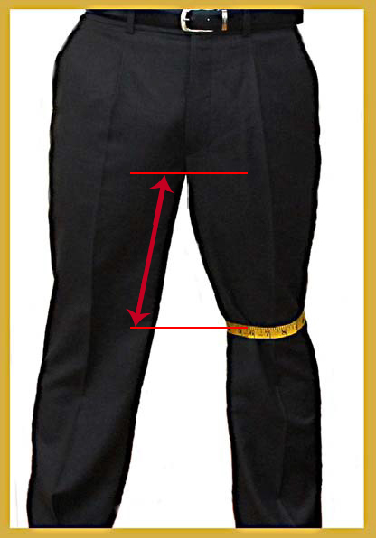 - Measure the length from the top of your inseam to the point of the center of your knee.