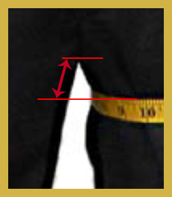 - Measure the length from the top of your inseam to the point of the widest part of your calf.